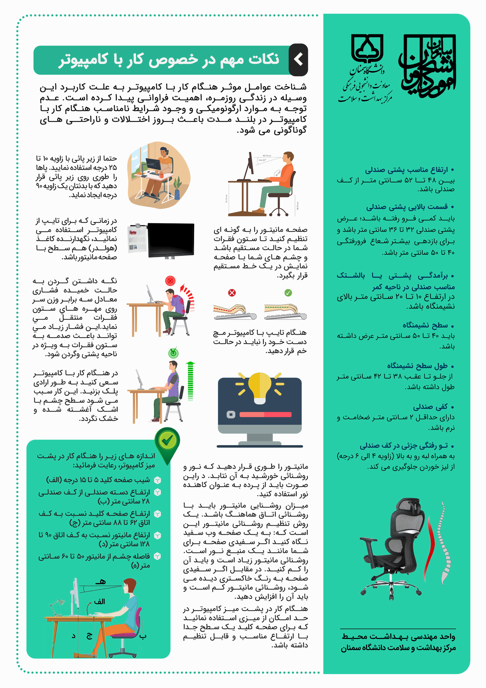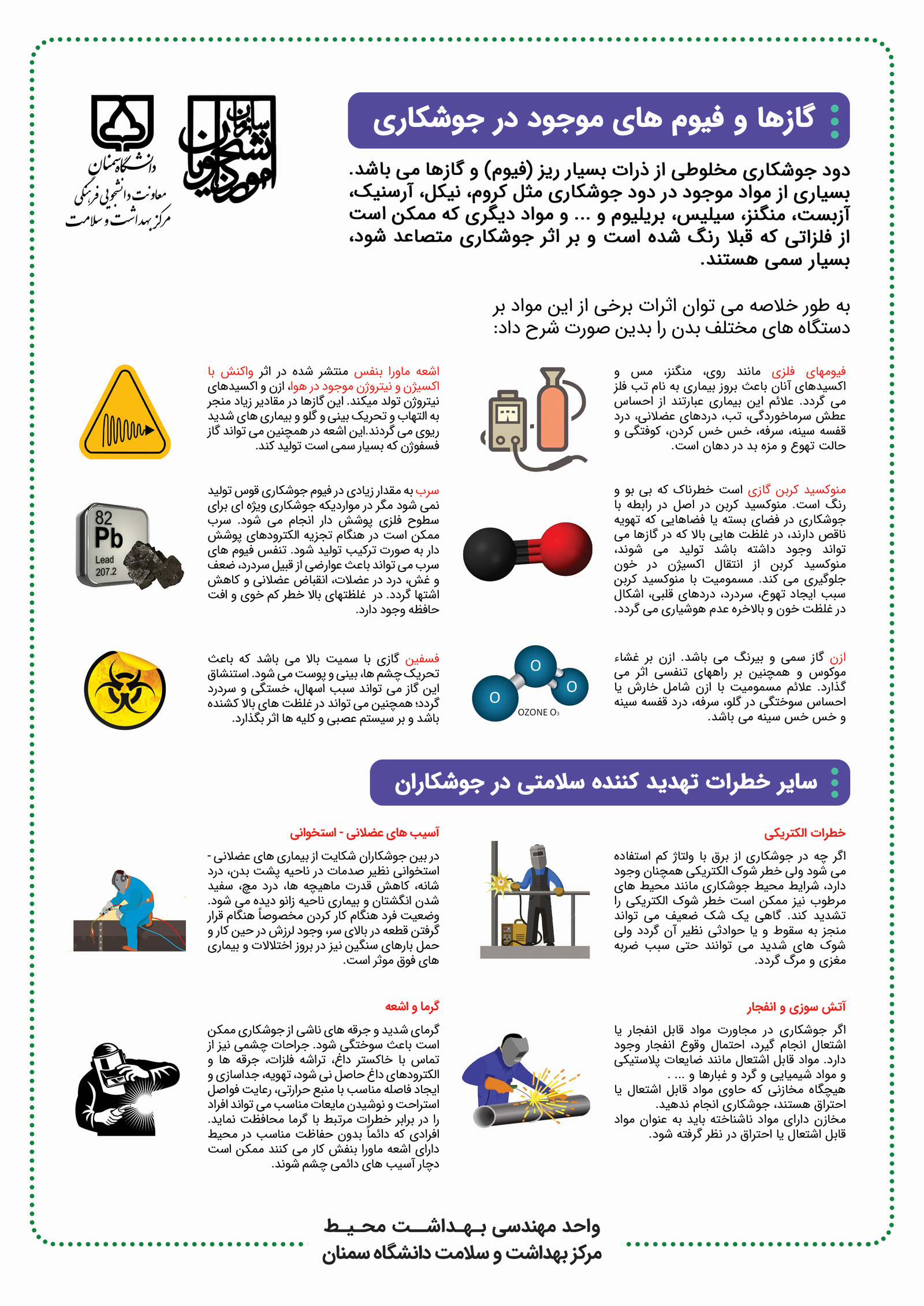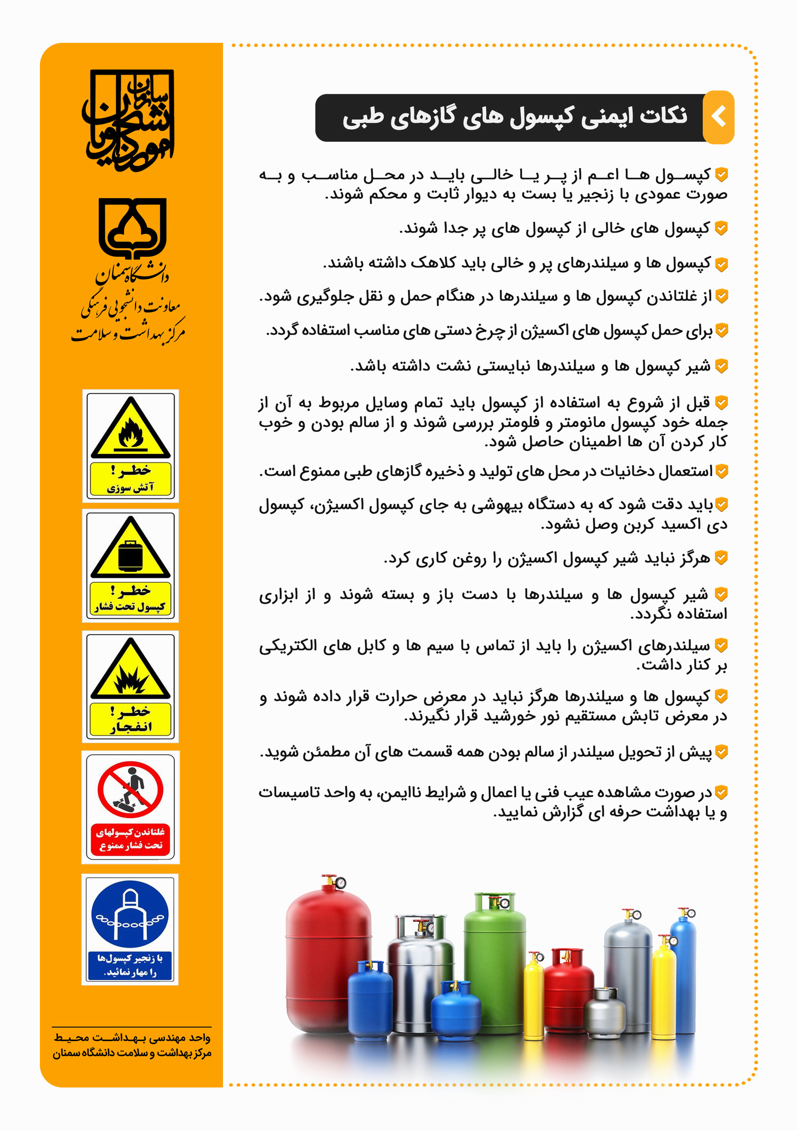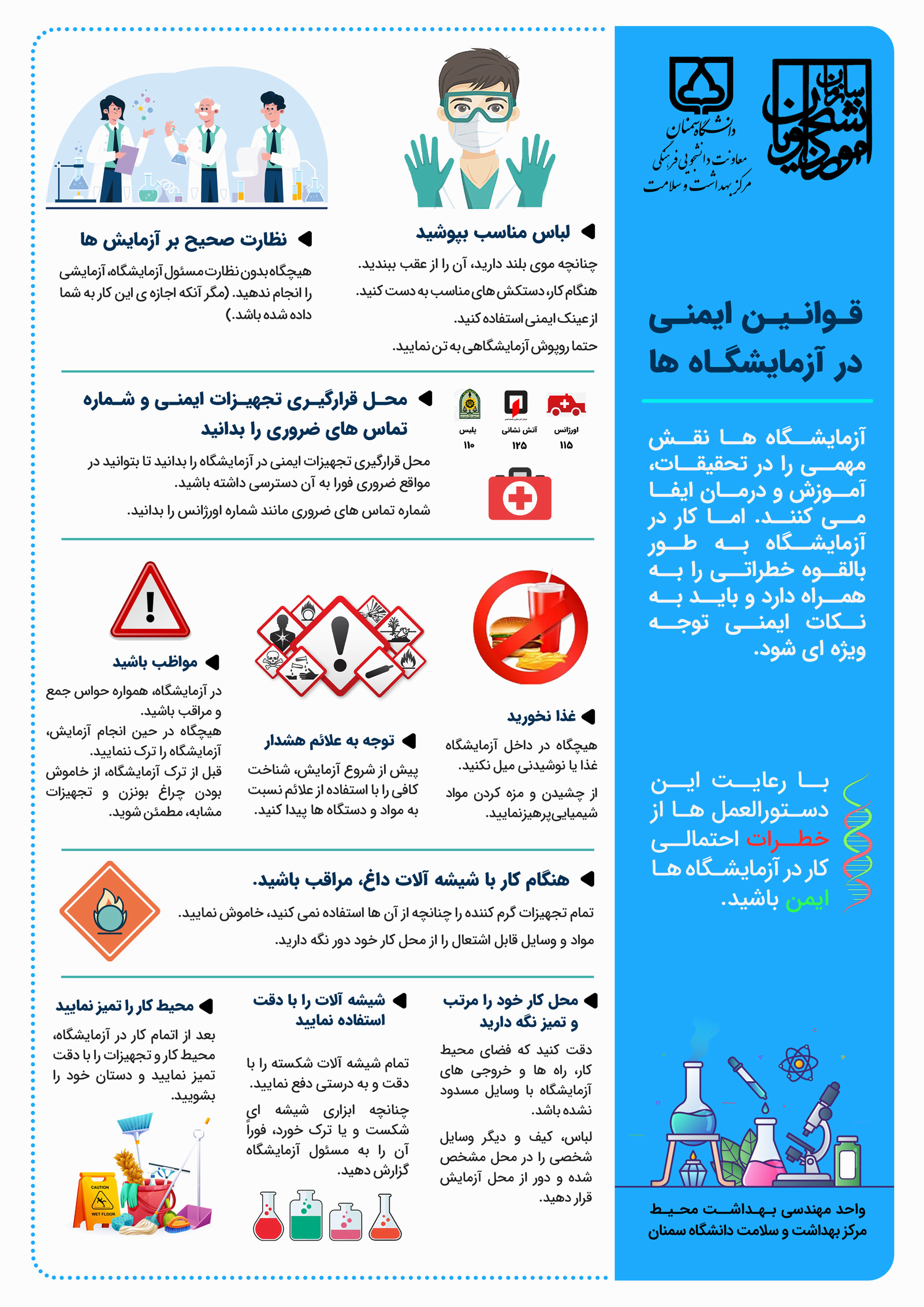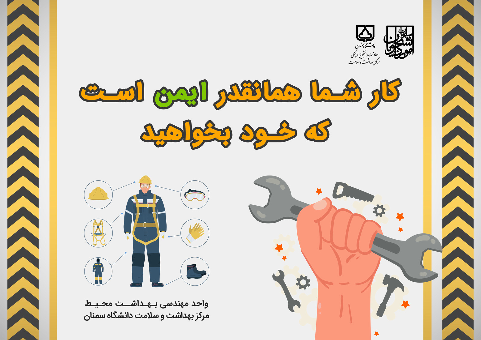 واحد مهندسی بهداشت محیط مرکز بهداشت و سلامت دانشگاه در راستای ارتقای سطح آگاهی، فرهنگ‌سازی و رعایت اصول ایمنی و بهداشت محیط در دانشگاه، مجموعه‌ای از پوسترهای ایمنی را با موضوعات مرتبط طراحی و تهیه نموده است.