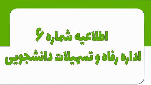 اطلاعیه شماره 6 اداره رفاه و تسهیلات نیمسال اول سال تحصیلی 1405-1404 1404/12/06 - 14:36 تعداد بازدید: 25 قابل توجه دانشجویان عزیز (روزانه و نوبت دوم)؛ بازه ثبت درخواست وامها اعلام شد. فایل راهنمای درخواست وام کلمات کلیدی